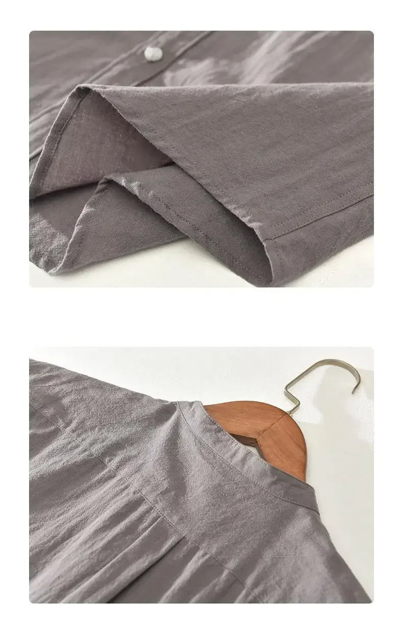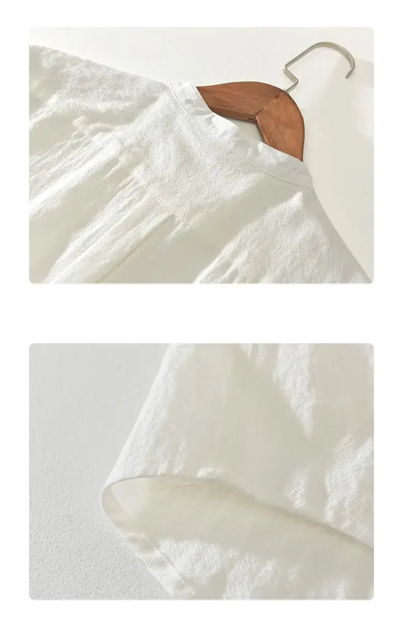 Men's Linen Shirt Short Sleeve Stand Collar Loose-fit Summer Thin Casual White Shirt Fresh Style Men's Casual Short Sleeve