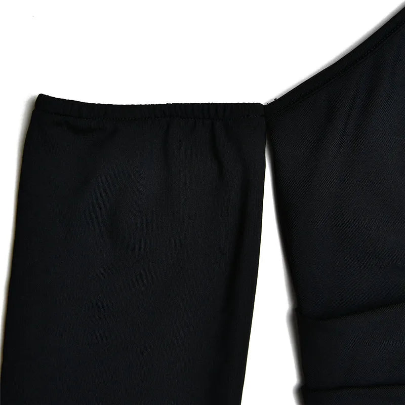 Mozision Oblique Shoulder Thigh High Split Maxi Dress Women Long Sleeve Backless Bodycon Sexy Club Party Long Dress Vestidos