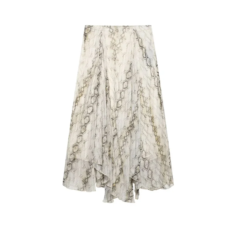 Women's Dresses Spring 2025 New Wide Hem Printed Skirt Irregular Design Personality Fashion Elegant and Versatile Beach Vacation