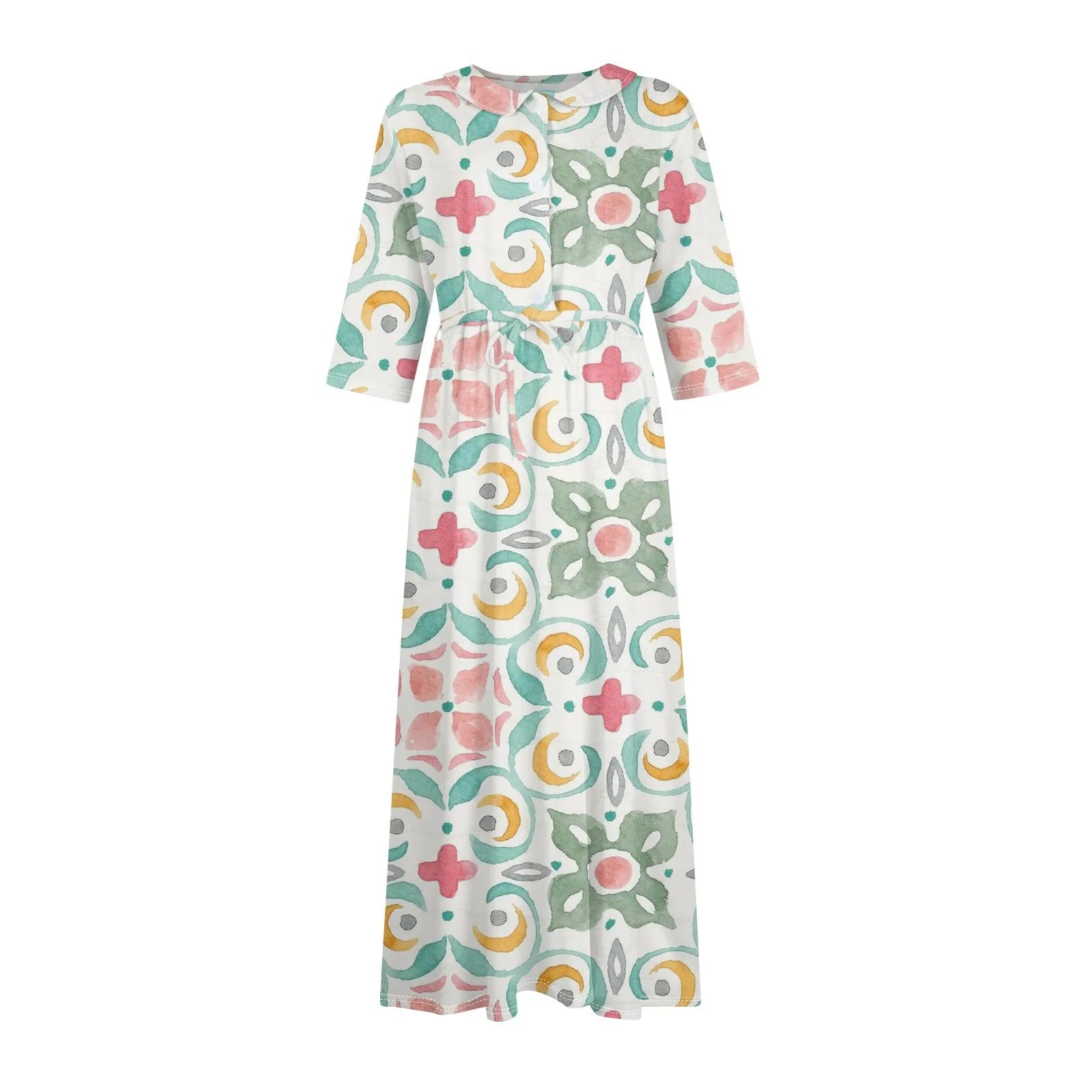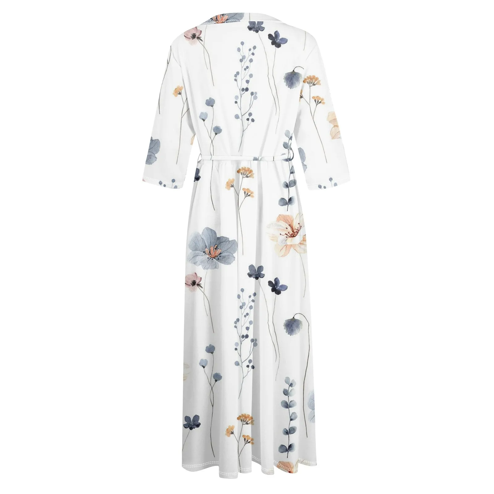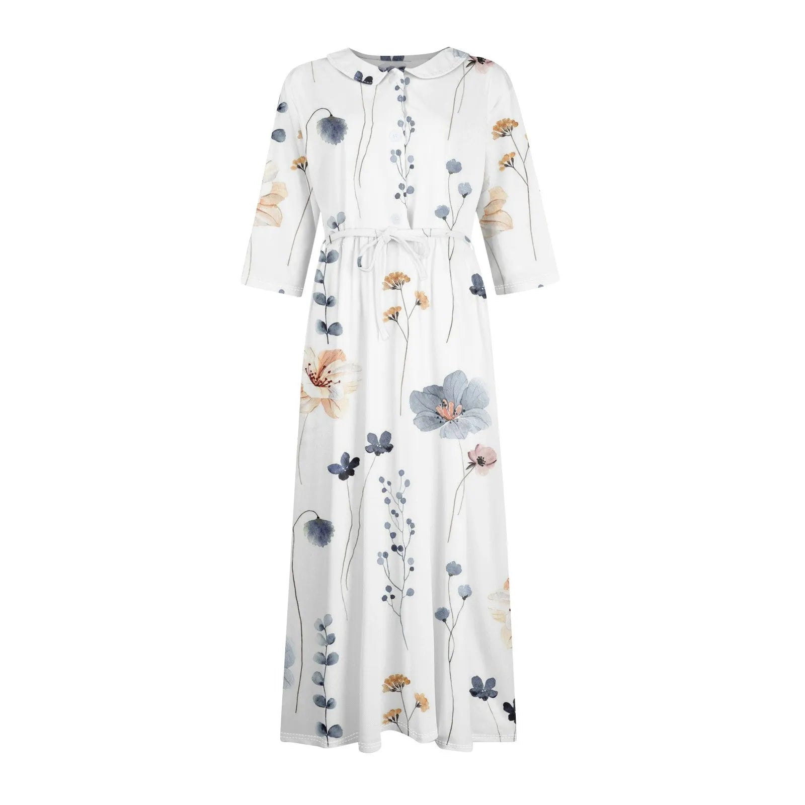 Women's Fashion Vintage Floral Print Lapel Button Three Quarter Sleeves Strappy Dress
