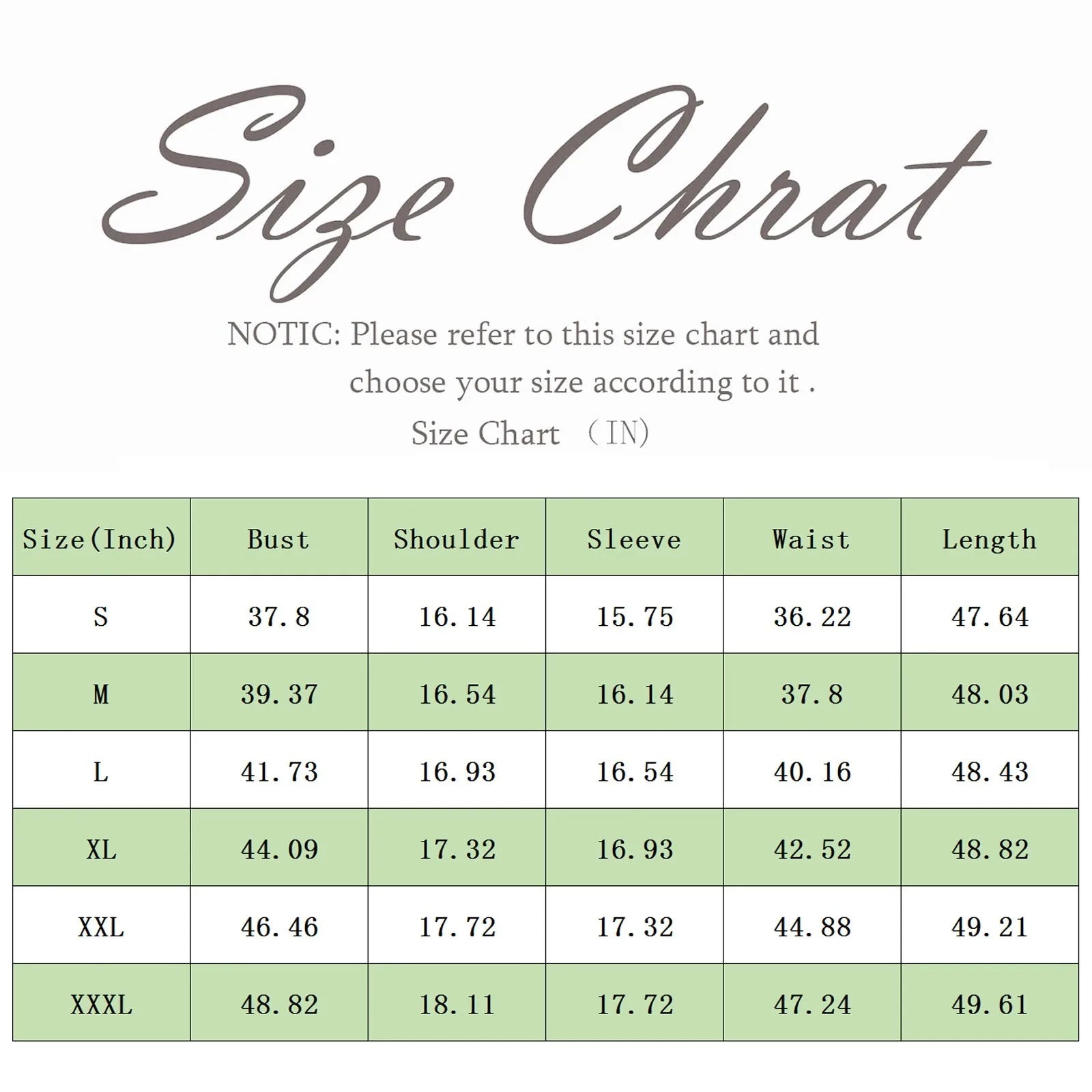 Size | Bust | Shoulder | Sleeve | Waist | Length |